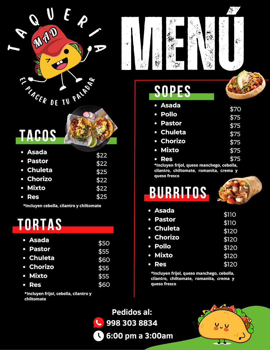 Overall, TAQUERIA MAD delivers a vibrant taste of Mexican culinary tradition with generous portions and a genuine, down-to-earth vibe ideal for locals and travelers alike.